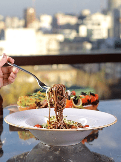 После продуктивной тренировки, вы можете насладиться Pin Up и полезным блюдом, и шикарным видом на центр города.